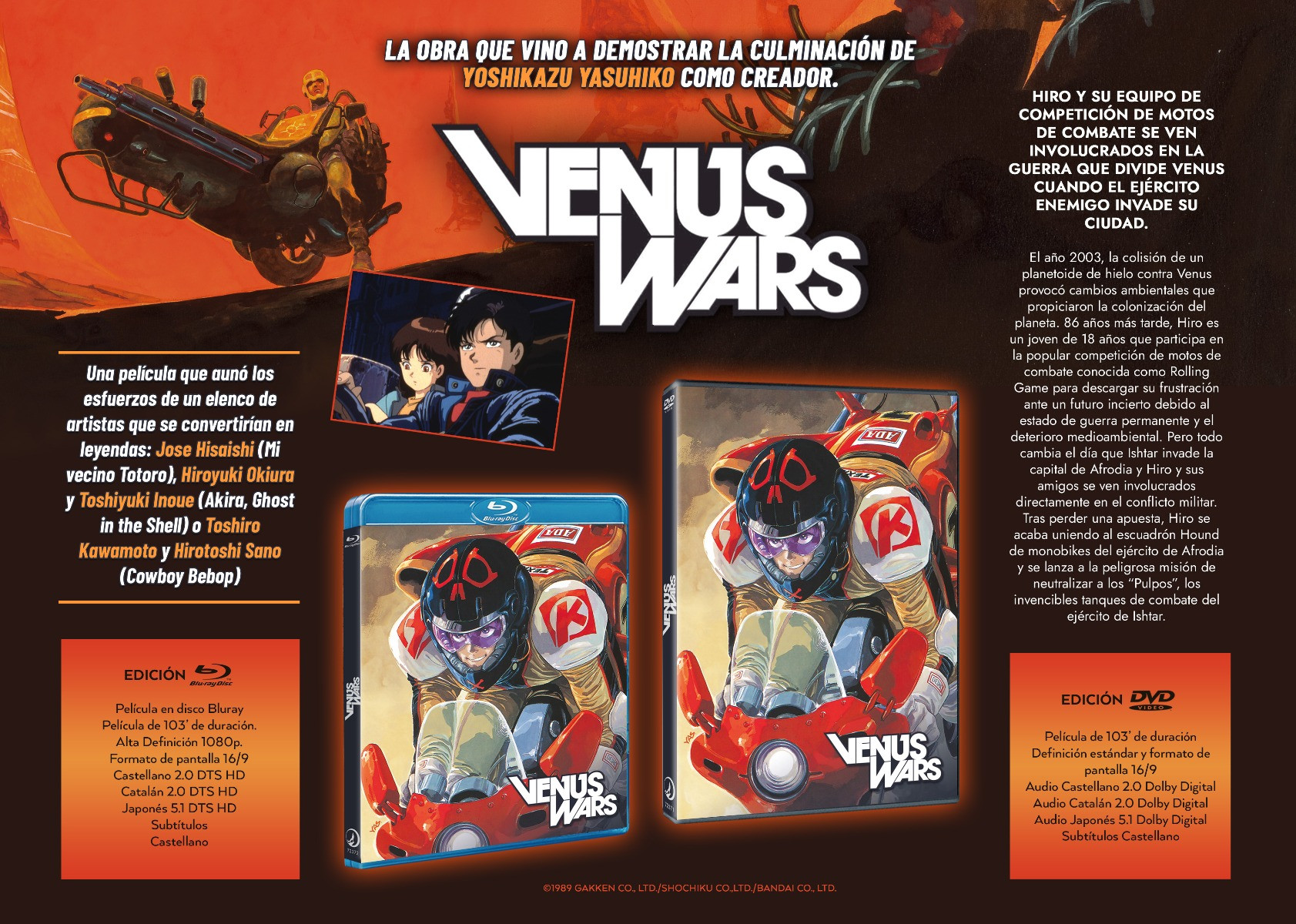 Hiro et son équipe de course de vélo de combat sont entraînés dans la guerre qui divise Vénus lorsque l’armée ennemie envahit leur ville. En 2003, la collision d’un planétoïde de glace contre Vénus a provoqué des changements environnementaux qui ont conduit à la colonisation de la planète. 86 ans plus tard, Hiro est un jeune de 18 ans qui participe à la populaire compétition de motos de combat connue sous le nom de Rolling Game pour exprimer sa frustration face à un avenir incertain en raison de l’état de guerre permanent et de la dégradation de l’environnement. Mais tout change le jour où Ishtar envahit la capitale d’Afrodia et Hiro et ses amis se retrouvent directement impliqués dans le conflit militaire. Après avoir perdu un pari, Hiro finit par rejoindre l’équipe Hound de monobikes de l’armée d’Aphrodia et se lance dans une mission dangereuse pour neutraliser les « Octopus », les principaux chars de combat invincibles de l’armée d’Ishtar.